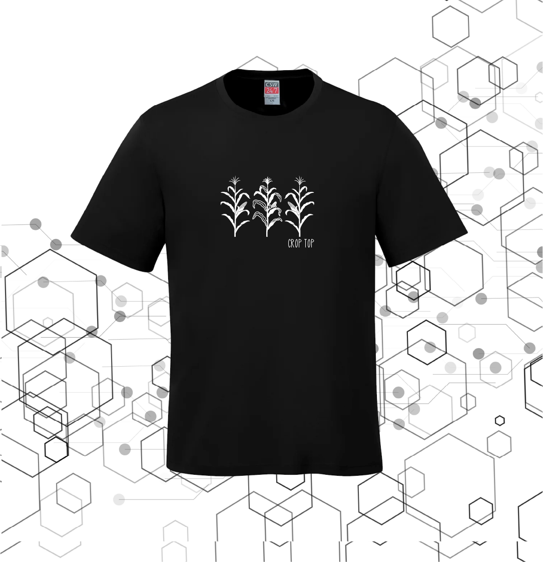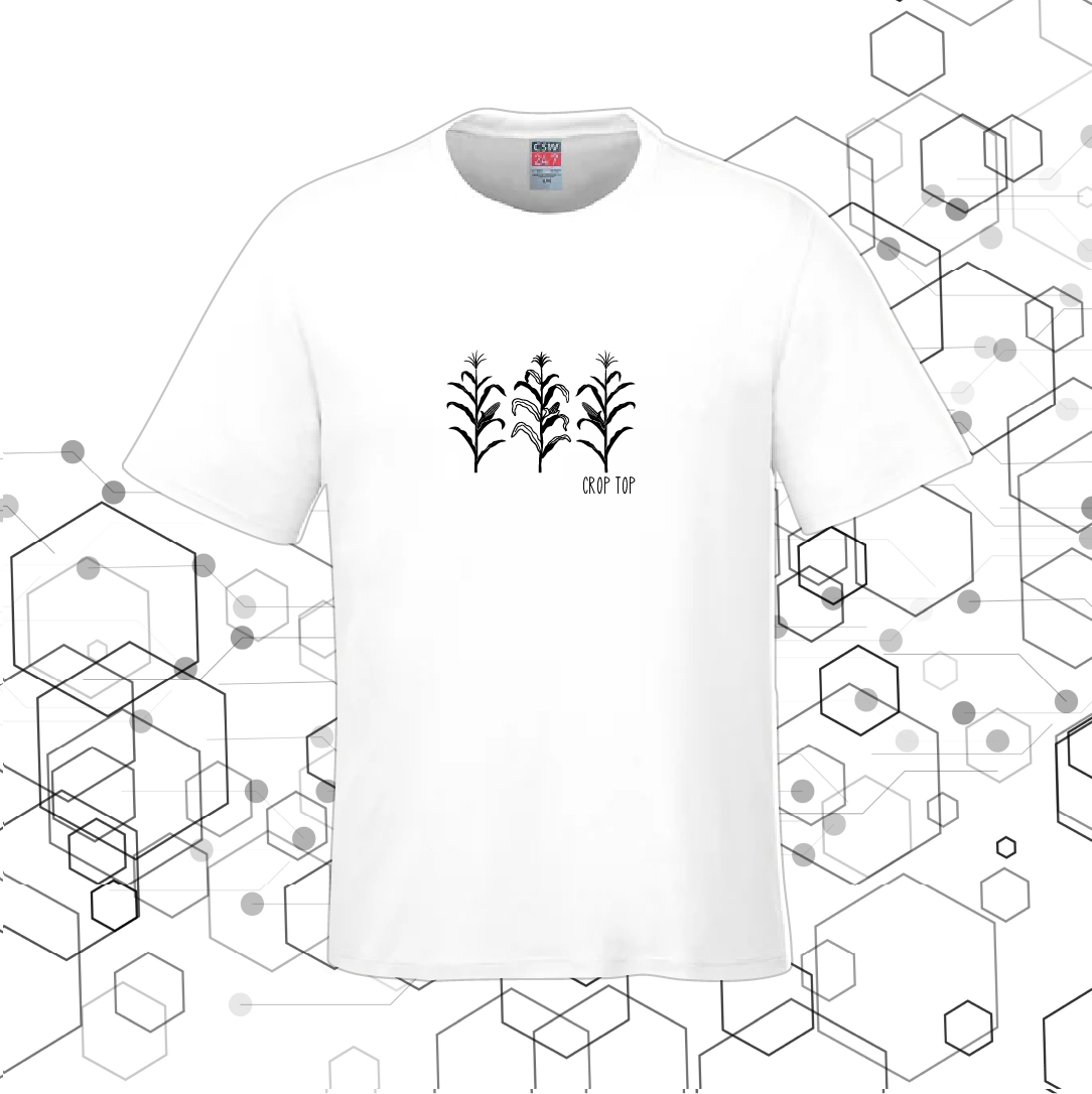 A regular Tshirt with the image of a corn crop.